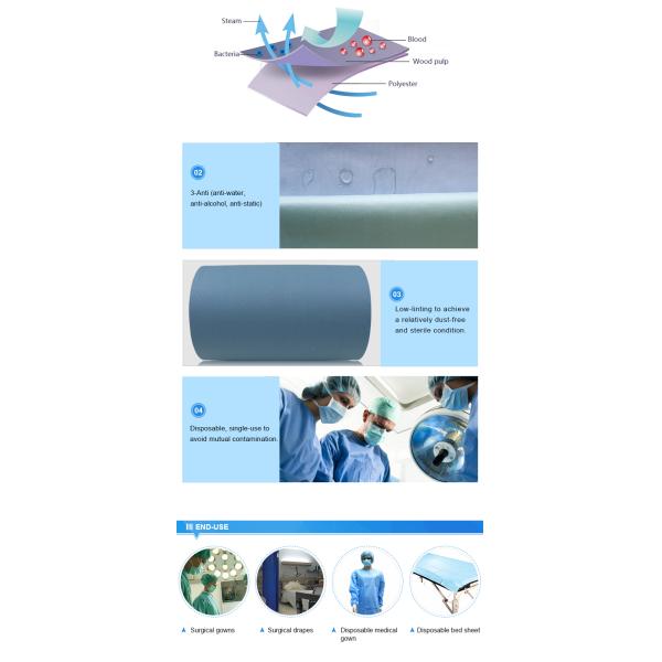 Product Name : 68gsm Anti-Static Spunlace Nonwoven Cloth For Surgical Gown